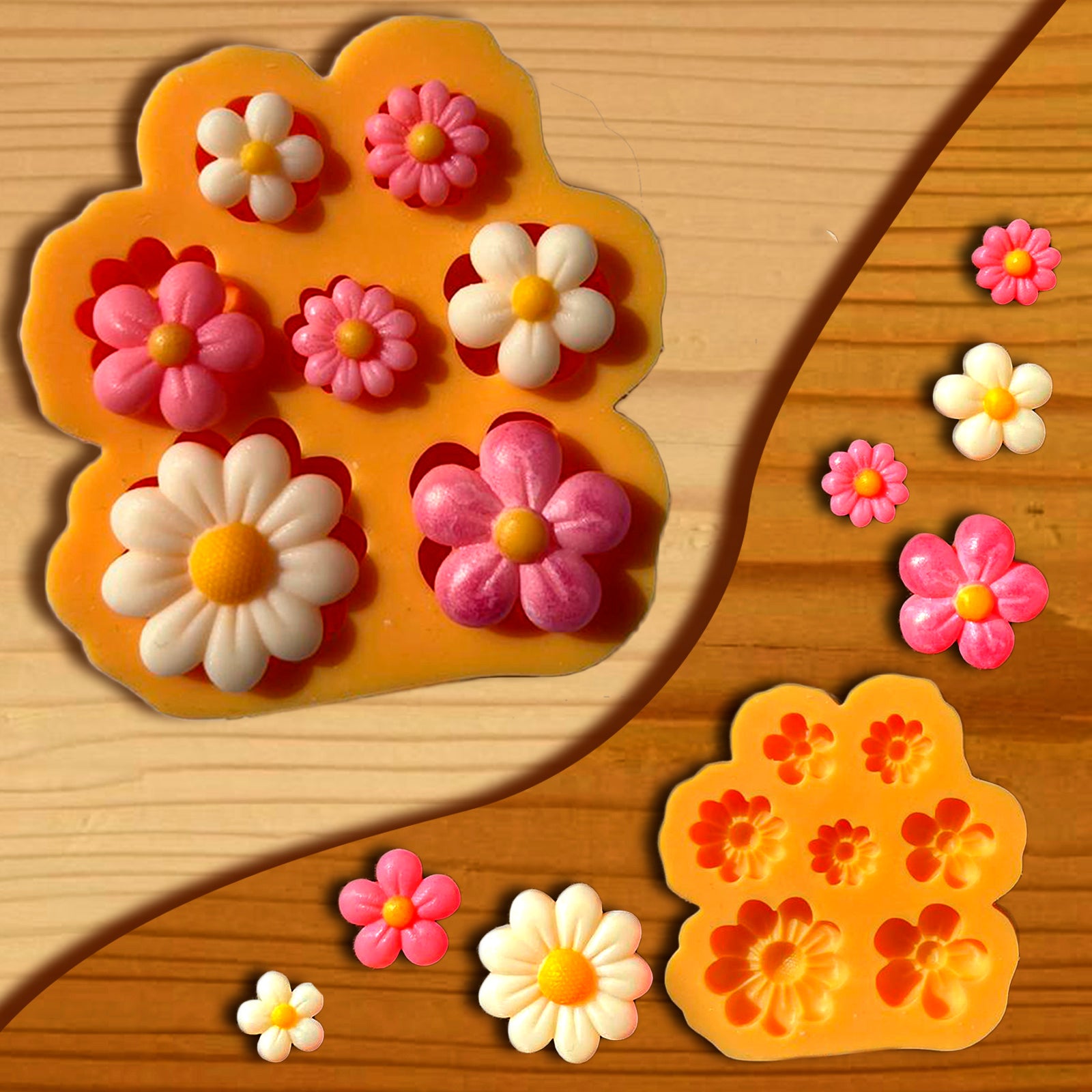 Las medidas estan en la imagen .Nuestros moldes logran piezas con detalles bien definidos con silicona super flexible fáciles de desmoldar.